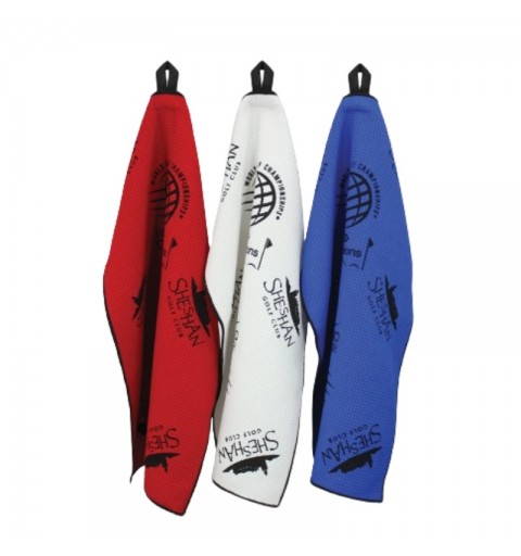 Serviettes Aqua-lock avec logos pouvant être imprimés sur mesure dans des designs multi-logos.