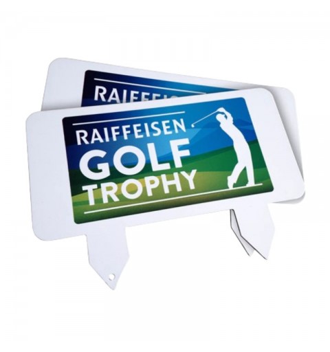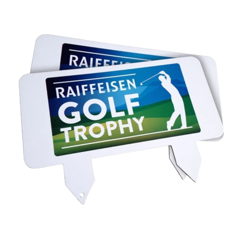 Nos marqueurs de tee de championnat sont fabriqués en acier, ils sont donc extrêmement durables avec une impression par sublimation double face en couleur résistante.