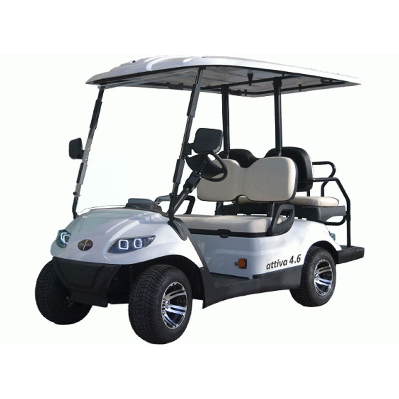 Véhicules électriques 4 places. Ce véhicule est utilisé pour transporter et déplacer des personnes à l'intérieur d'installations touristiques, industrielles et sportives
